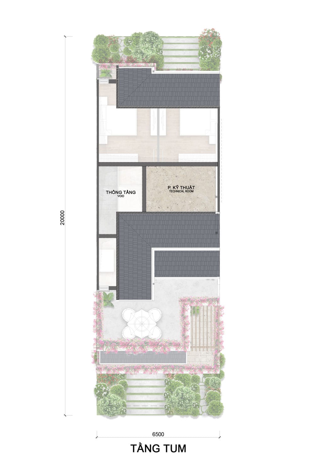 Bố trí phòng kỹ thuật và khu thông tầng.