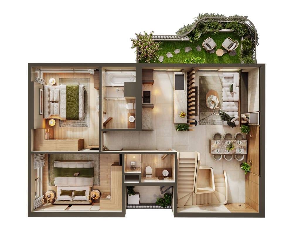 Căn hộ Duplex Eco Retreat – Sky Retreat – 196.5m² – Tuyệt tác sống xanh giữa bầu trời